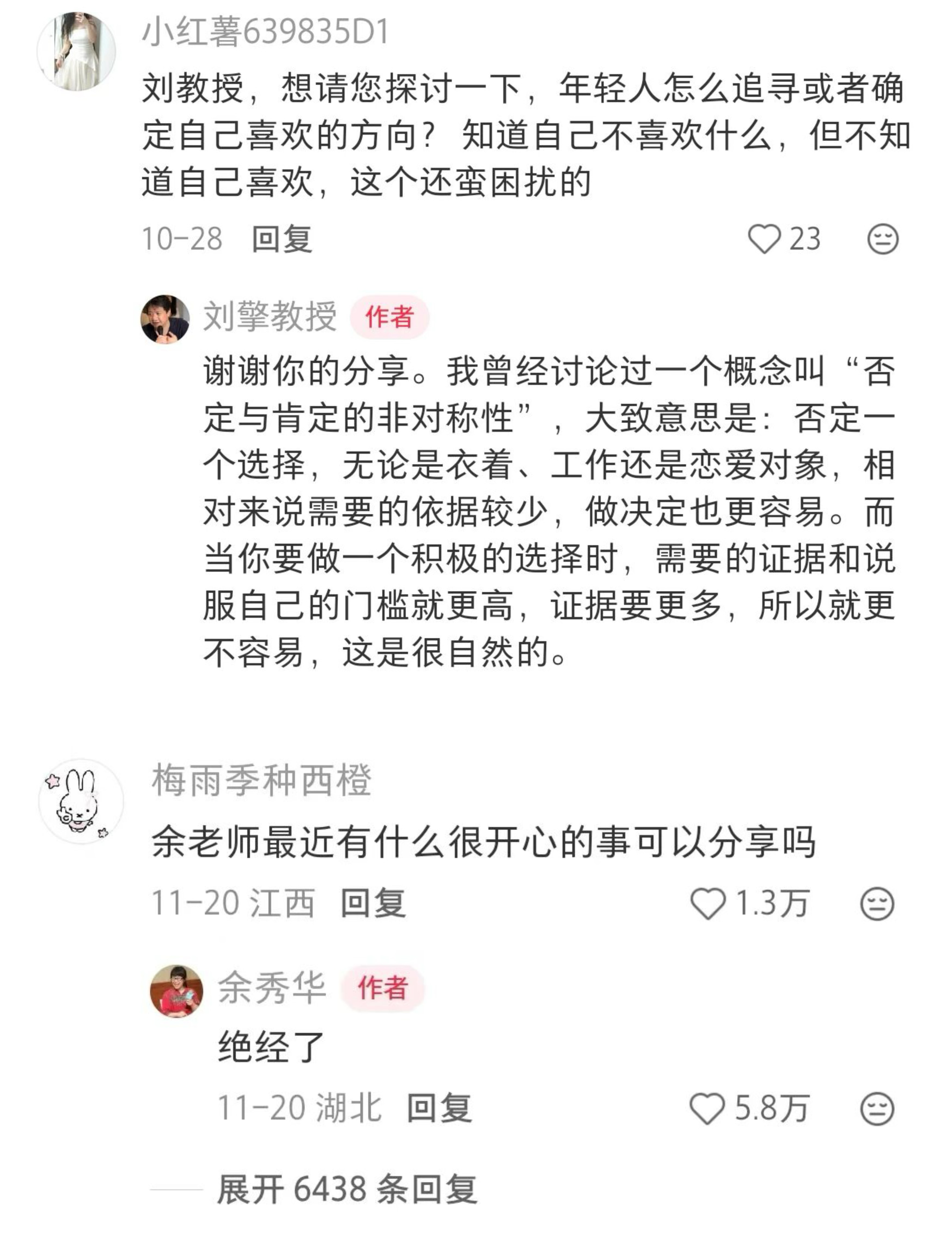 丁欣雨:《中国新闻周刊》发了一篇文章,写到最近小红书有很多文化名人起号,发布一种AMA(我是xxx,ask me anyting,有问必答)的内容范式,有很多网友在评论区提问,生活太苦了怎么办?天气冷心情差怎么办?他们亲自下场一一解答,运用一点知识,也会用幽默表达来回应他们。这大概也能对应上许知远所说的“接地气”吧。即使是拥有很多知识储备和文化资本的名人,我们跟他们的距离也没有想象中那么远,他们也跟我们一样有平凡亲民的一面。